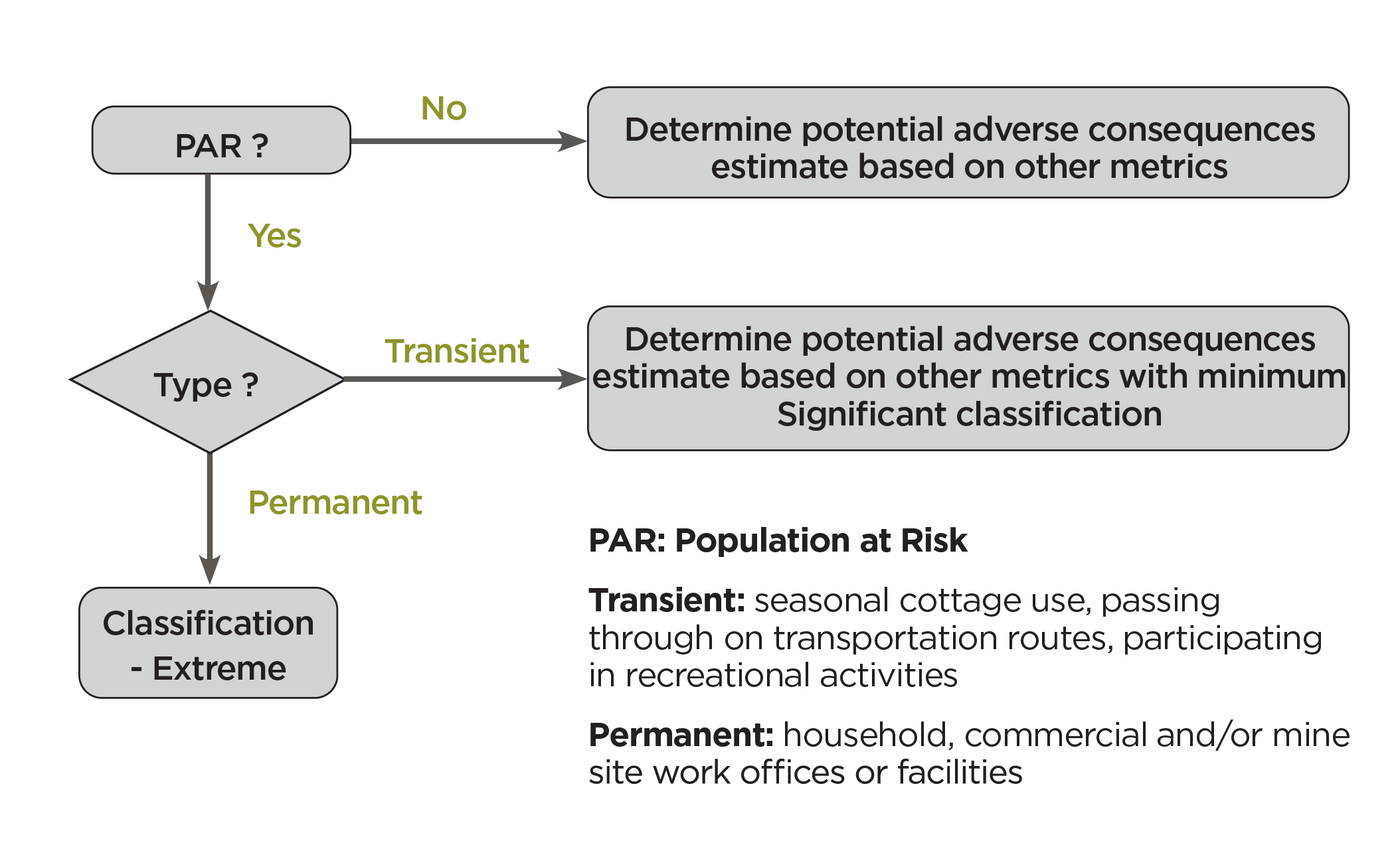 - If there is no permanent Population at Risk, but there is a transient Population at Risk, the minimum consequence classification is Significant.
